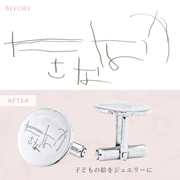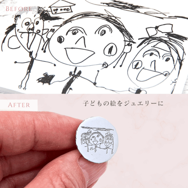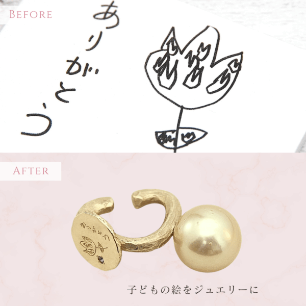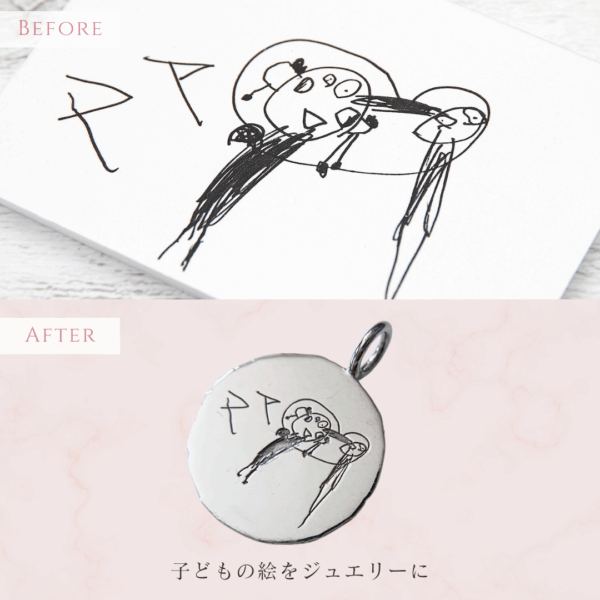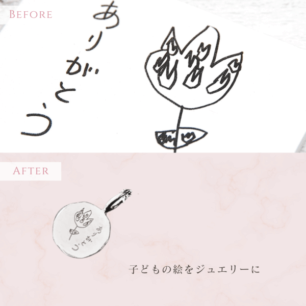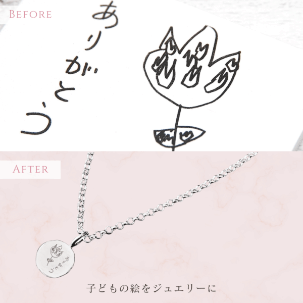 だからこそアンリガトウは、お子さまの描いた絵や文字を「そのままジュエリーに」できる【momento】シリーズをつくりました。